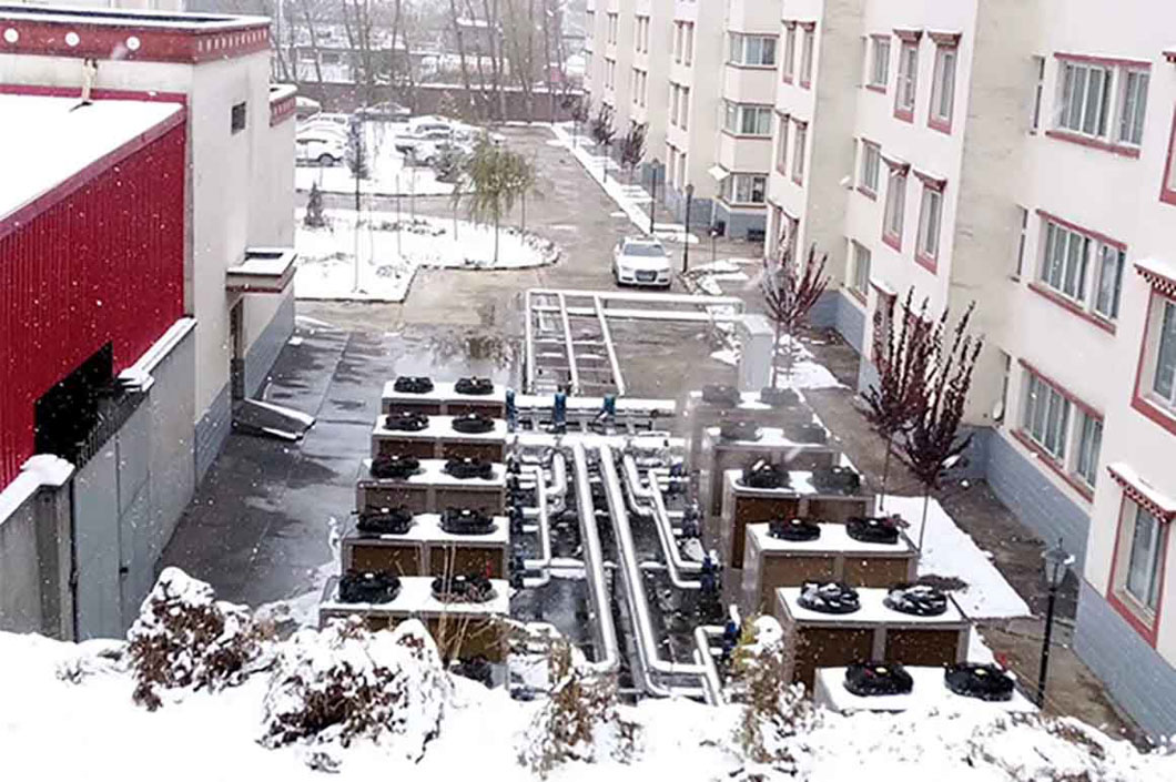 夏河祁連山水泥廠采暖末端是暖氣片,采用21臺芬尼克茲北極星超低溫超低溫機組,最高出水溫度65℃,整個冬季運行良好,采暖效果滿足甲方需要,得到甲方的一致好評。